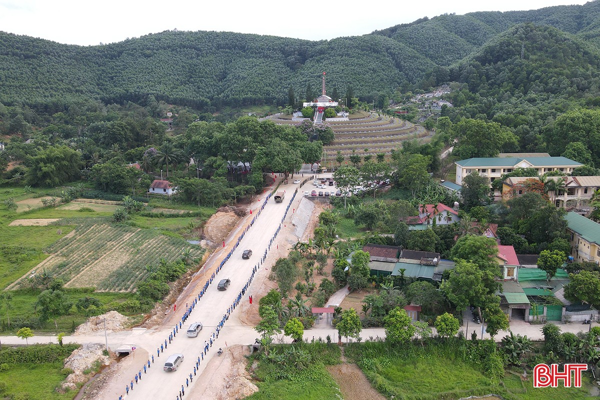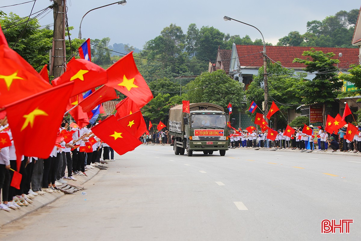 Sau lễ đón nhận và dâng hương diễn ra tại Cửa khẩu quốc tế Cầu Treo, 14 giờ 30 phút chiều 16/5, đoàn xe di chuyển hài cốt liệt sỹ quân tình nguyện và chuyên gia Việt Nam hy sinh tại Lào về Nghĩa trang liệt sỹ Nầm ở xã Sơn Châu, huyện Hương Sơn.