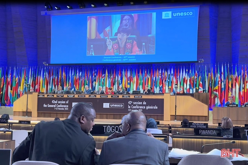 Phó Chủ tịch UBND tỉnh Trần Báu Hà, Trưởng ban Dân vận Tỉnh ủy Trương Thanh Huyền và đại diện một số sở, ban ngành liên quan của Hà Tĩnh tham gia phái đoàn Việt Nam tại Phiên họp toàn thể lần thứ 42 của Đại hội đồng UNESCO diễn ra tại Paris (Cộng hòa Pháp) vào tháng 11/2023.