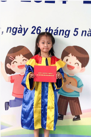 Vẻ xinh xắn đáng yêu của bé Nguyễn Thị Ngọc Hà trong lễ tổng kết năm học 2024-2025 vừa qua.