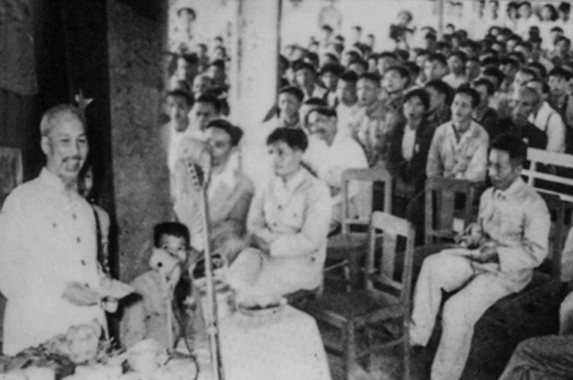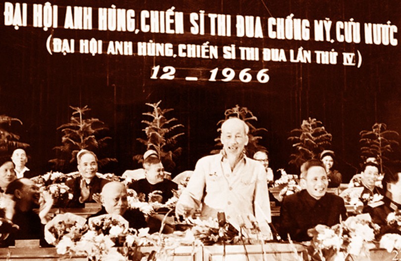 Chủ tịch Hồ Chí Minh phát biểu tại Đại hội Anh hùng, chiến sĩ thi đua lần thứ IV ở Hà Nội (tháng 12/1966), . Ảnh tư liệu TTXVN.