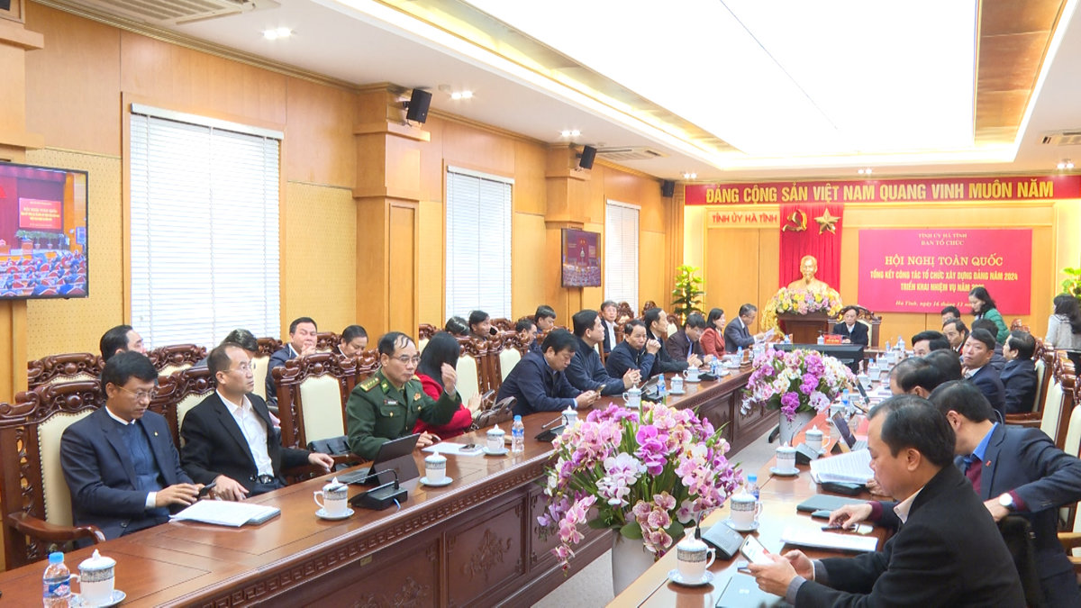 Đồng chí Hoàng Trung Dũng, Ủy viên Trung ưởng Đảng, Bí thư Tỉnh ủy, Chủ tịch HĐND tỉnh; đồng chí Võ Hồng Hải - UVBTV, Trưởng ban Tổ chức Tỉnh ủy Hà Tĩnh tham dự ở điểm cầu Hà Nội. Đồng chí Trần Thế Dũng, Phó Bí thư Thường trực Tỉnh ủy chủ trì tại điểm cầu Hà Tĩnh, tham dự có đồng chí Võ Trọng Hải, Phó Bí thư Tỉnh ủy - Chủ tịch UBND tỉnh ; các đồng chí Ủy viên Ban Thường vụ Tỉnh ủy.