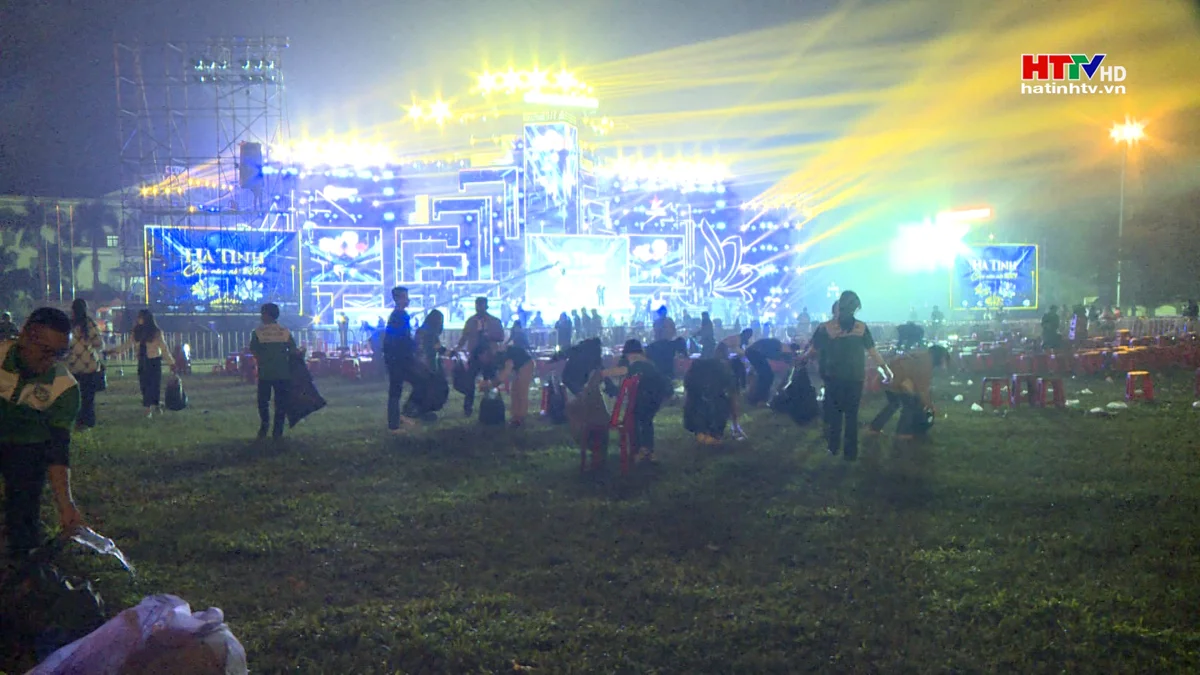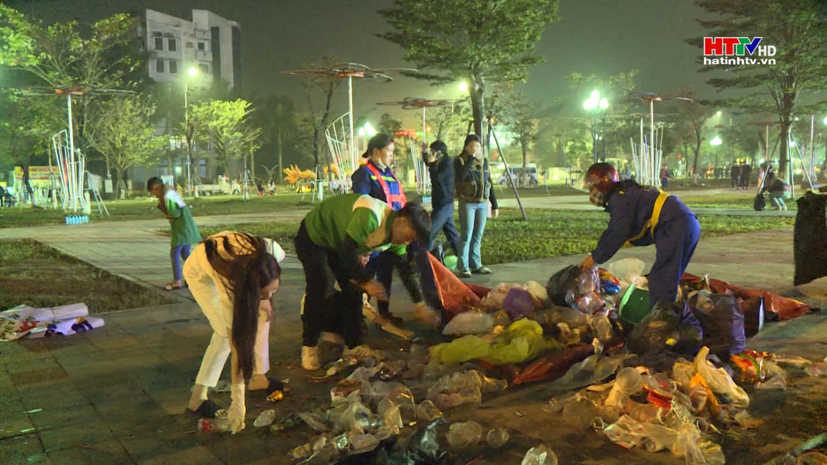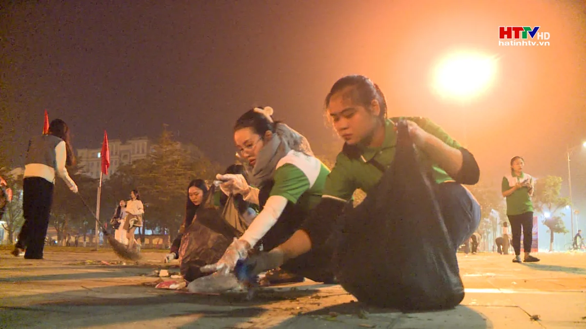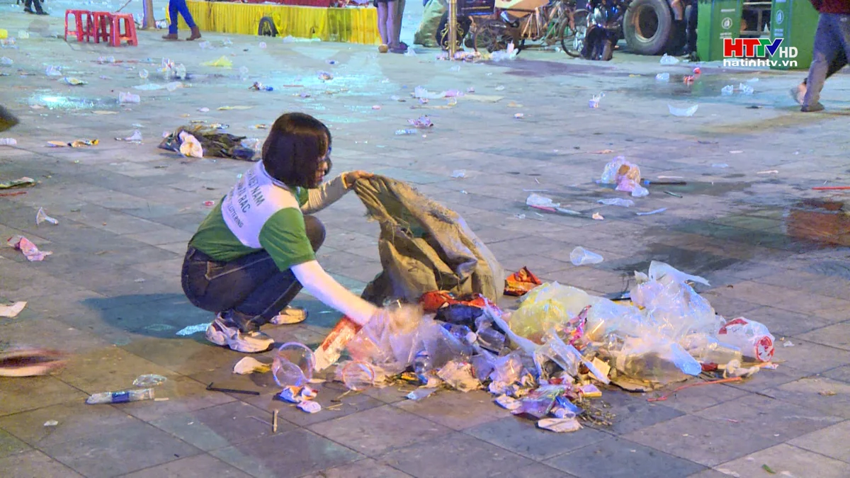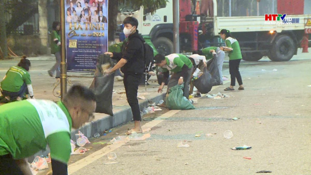Một số hình ảnh về Hội yêu rác Hà Tĩnh xử lý môi trường sau chương trình Hà Tĩnh chào năm mới 2024