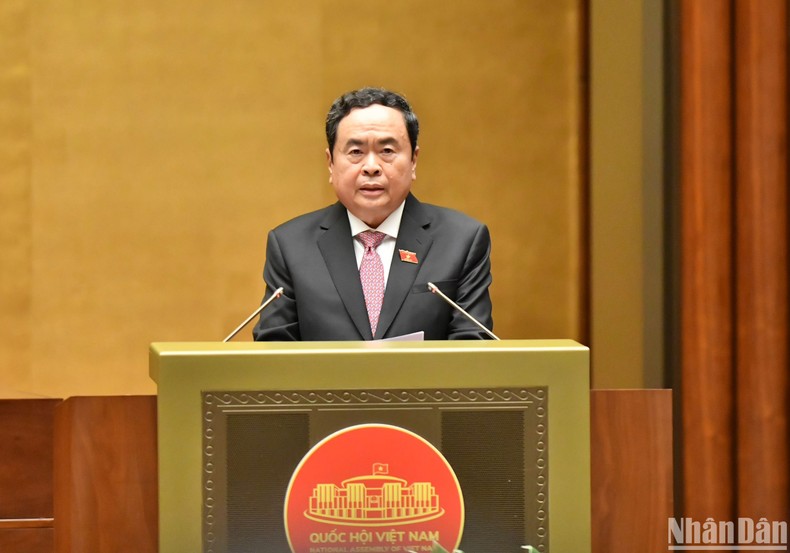 Phó Chủ tịch Thường trực Quốc hội Trần Thanh Mẫn phát biểu khai mạc Kỳ họp thứ 7, Quốc hội khóa XV. (Ảnh: LINH KHOA)
