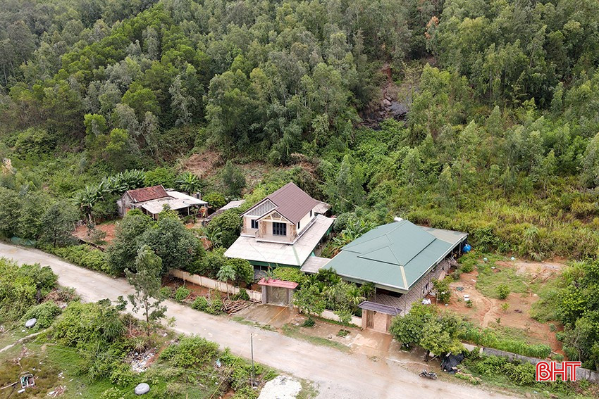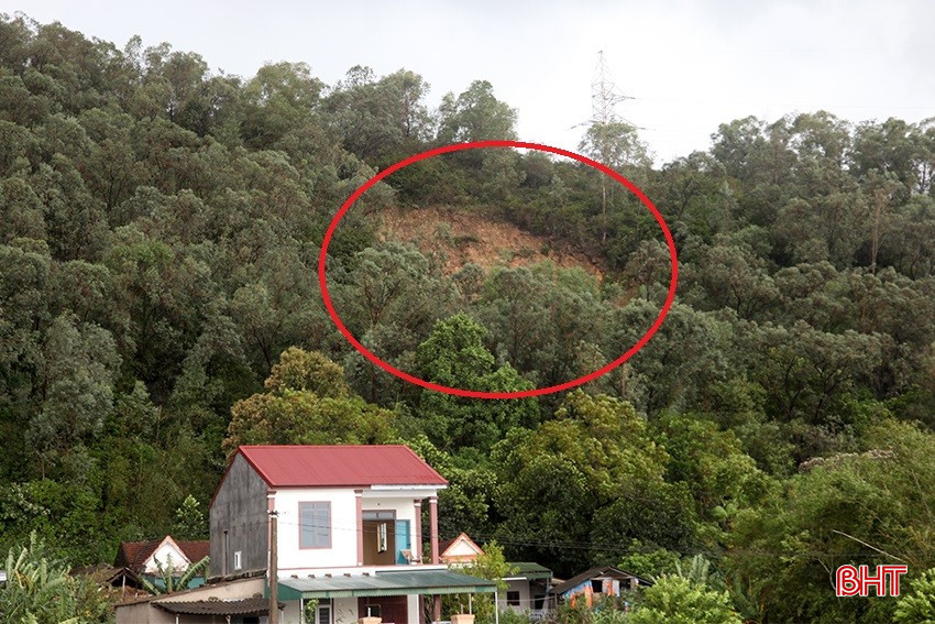 Các hộ dân xây dựng nhà cửa dưới chân núi Nam Giới ở thôn Tân Phong, xã Đỉnh Bàn, huyện Thạch Hà, có nguy cơ cao xảy ra sạt lở đất.