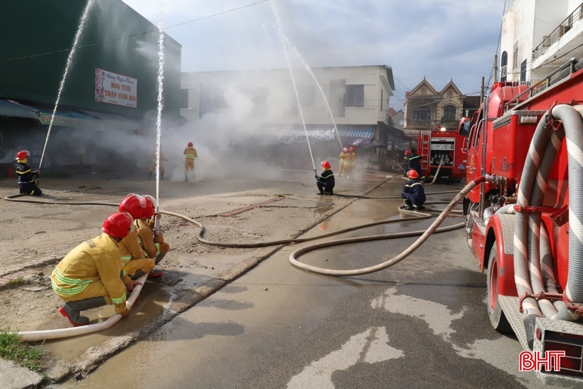 Thực nghiệm công tác chữa cháy tại chợ Phố Châu (Hương Sơn)