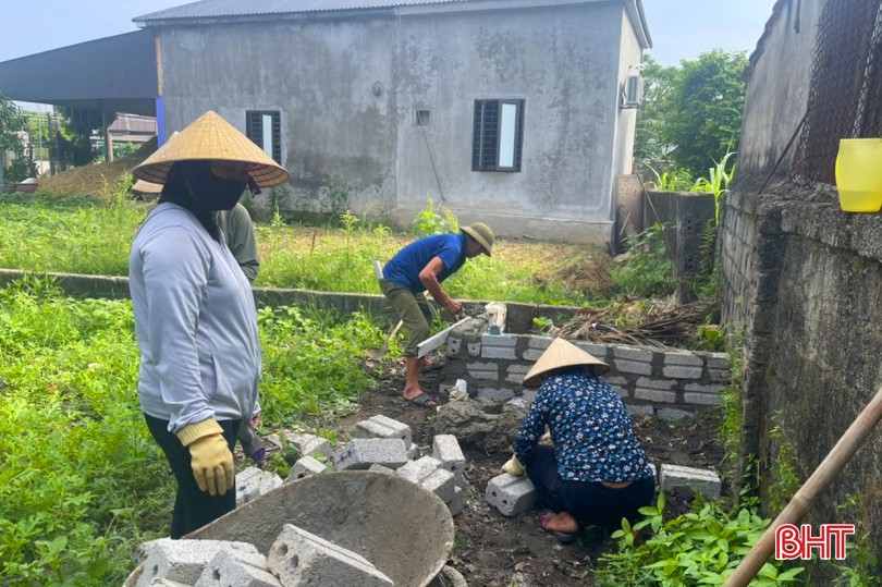 Người dân thôn Tây Hà tập trung xây dựng hố phân loại rác hữu cơ và chỉnh trang vườn hộ.