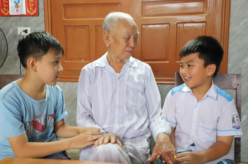 Niềm vui tuổi già của người cựu TNXP Nguyễn Trí Cảnh vui vầy bên các con.