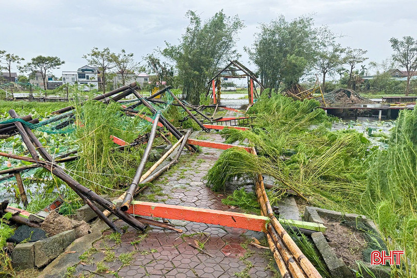 Sau cơn bão số 10, Khu sinh thái ven đô nổi tiếng ở Hà Tĩnh - Thôn Trang Liên Nhật (thuộc HTX Nông nghiệp và dịch vụ tổng hợp Liên Nhật) ở phường Trần Phú bị sập mái nhà, cây cối gãy đổ, đồ trang trí vỡ vụn. Cảnh quan vốn nên thơ giờ phủ đầy dấu vết cuồng phong, ước tính thiệt hại sơ bộ lên tới hàng trăm triệu đồng.