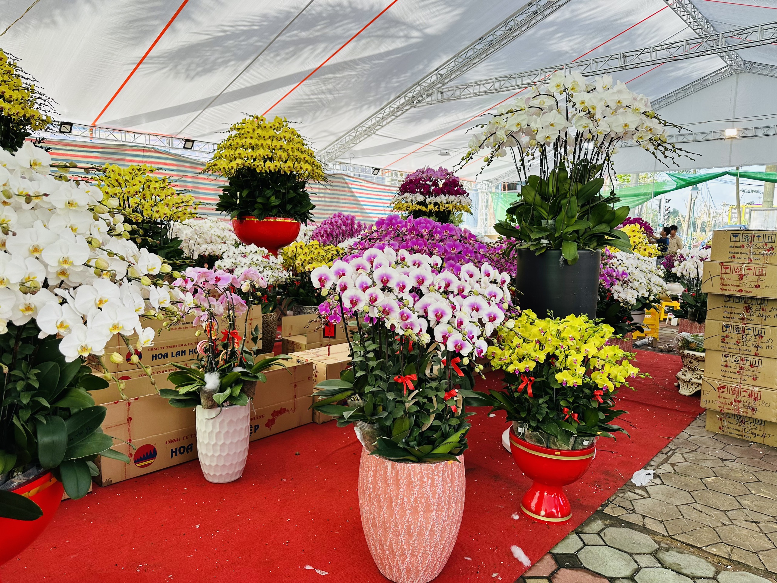 Những ngày này, các cửa hàng hoa dọc tuyến phố Phan Đình Phùng, Hà Huy Tập....tại Thành phố Hà Tĩnh bắt đầu bày bán những chậu Lan Hồ điệp từ nhỏ tới giá "cực khủng" phục vụ thị trường Tết. Nhiều người hết sức ngỡ ngàng khi được chiêm ngưỡng những chậu lan đẹp mê lòng được cắm đa dạng, mang vẻ đẹp tự nhiên, mộc mạc để thu hút khách hàng.