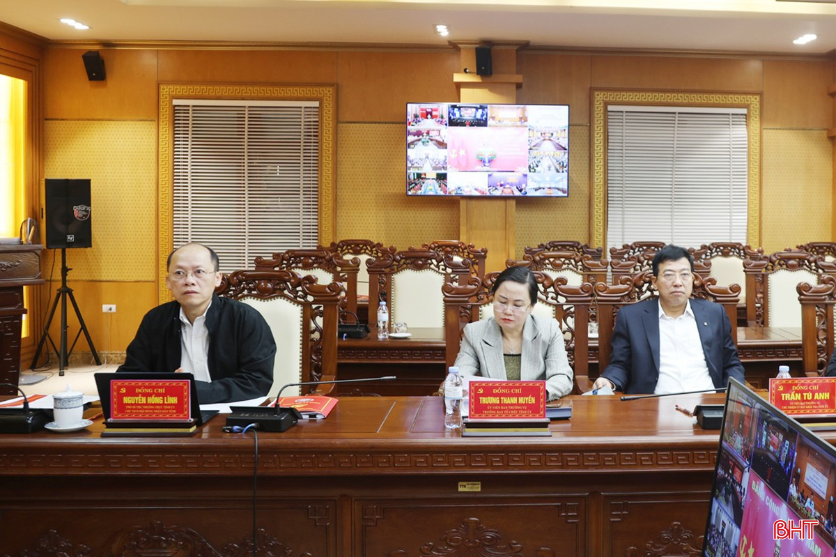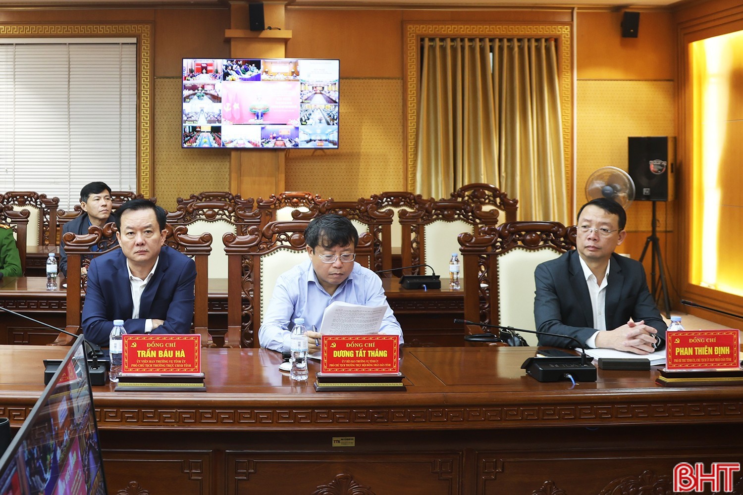 Bí thư Tỉnh ủy Nguyễn Duy Lâm - Trưởng BCĐ về phát triển khoa học công nghệ, đổi mới sáng tạo và chuyển đổi số tỉnh chủ trì tại điểm cầu Hà Tĩnh. Phó Bí thư Thường trực Tỉnh ủy - Chủ tịch HĐND tỉnh Nguyễn Hồng Lĩnh; Phó Bí thư Tỉnh ủy - Chủ tịch UBND tỉnh Phan Thiên Định; các Ủy viên BTV Tỉnh ủy cùng dự.