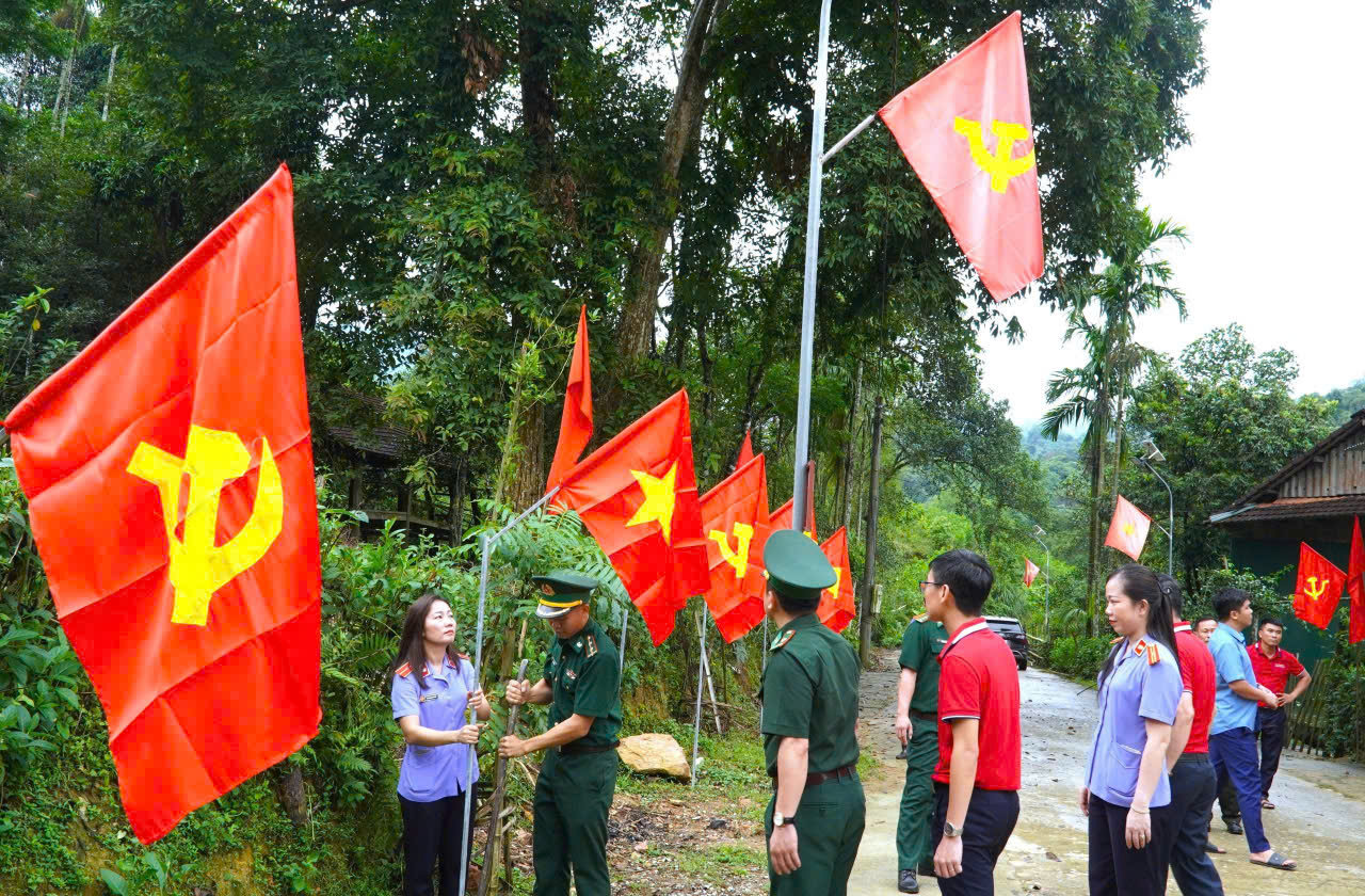 Ngay sau buổi lễ, cán bộ, chiến sĩ và bà con đã cùng nhau treo cờ tại các tuyến đường chính, trước mỗi ngôi nhà, tạo nên hình ảnh một bản làng rực rỡ sắc đỏ giữa núi rừng hùng vĩ. Hàng trăm lá cờ tung bay phấp phới, hòa cùng nhịp sống yên bình nơi vùng biên, như minh chứng sinh động cho tinh thần yêu nước và sự gắn bó keo sơn của đồng bào các dân tộc thiểu số với sự nghiệp xây dựng, bảo vệ Tổ quốc.