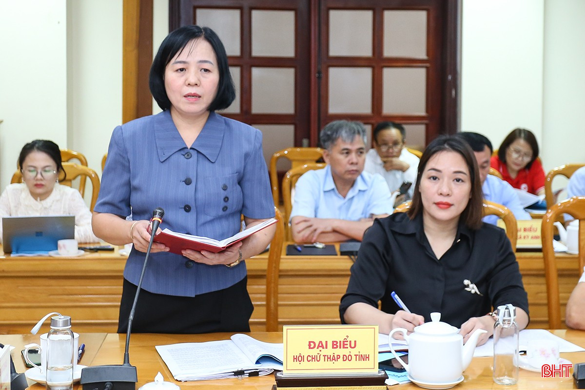 Chủ tịch Hội Chữ thập đỏ tỉnh Lê Thị Mai Hoa làm rõ một số vấn đề tại hội nghị.