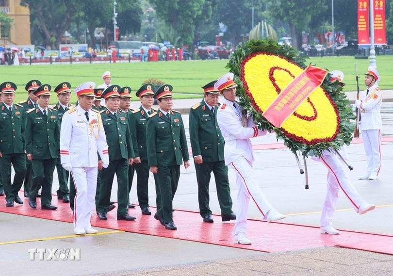 Các vị lãnh đạo, nguyên lãnh đạo Đảng, Nhà nước đặt vòng hoa và vào Lăng viếng Chủ tịch Hồ Chí Minh.Đoàn đại biểu Ban Chấp hành Trung ương Đảng, Quốc hội, Chủ tịch n