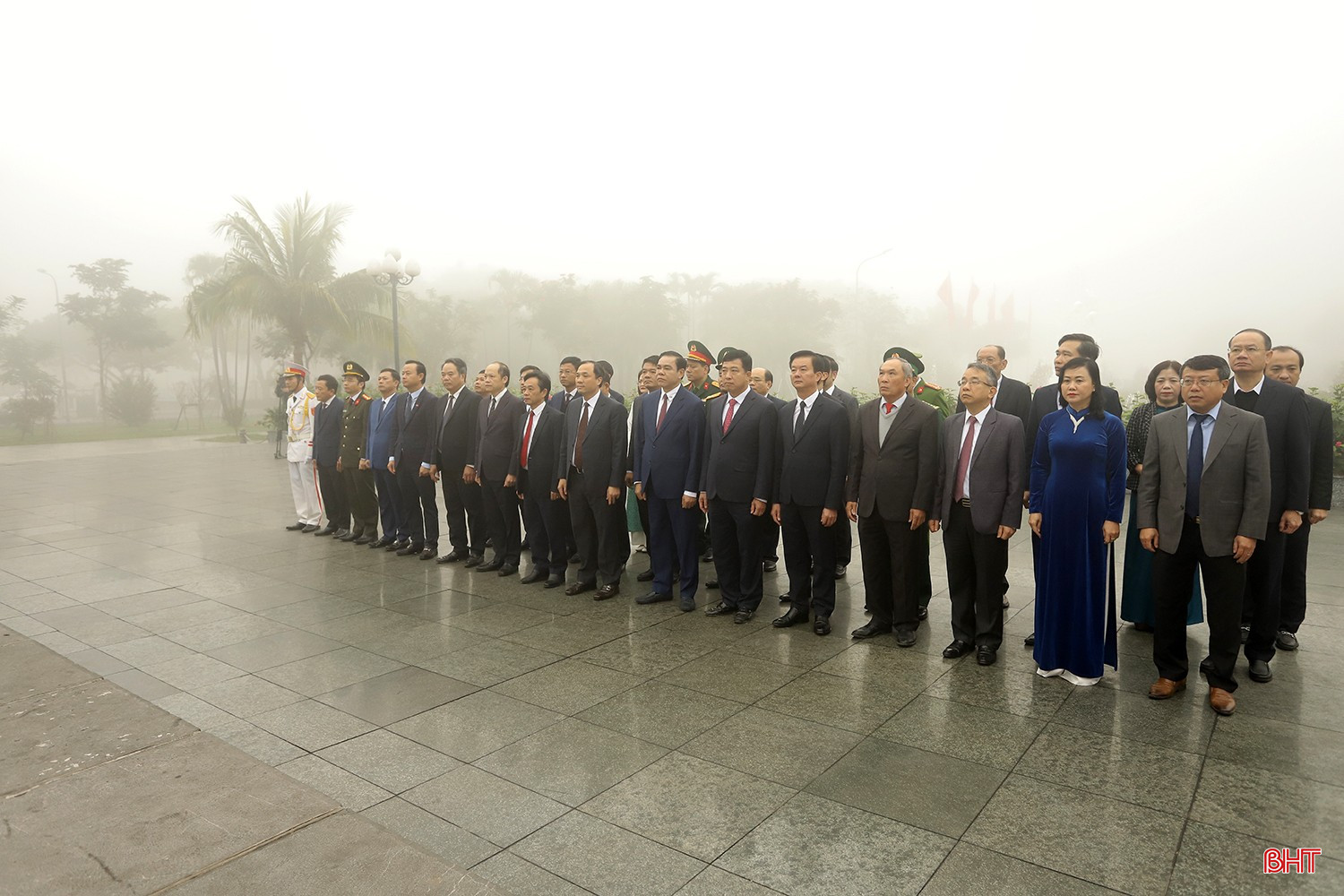 Đoàn đại biểu Tỉnh ủy, HĐND, UBND, Ủy ban MTTQ tỉnh Hà Tĩnh cũng đã đến đặt vòng hoa, dâng hương tưởng niệm Chủ tịch Hồ Chí Minh tại Khu di tích Kim Liên (huyện Nam Đàn, tỉnh Nghệ An).