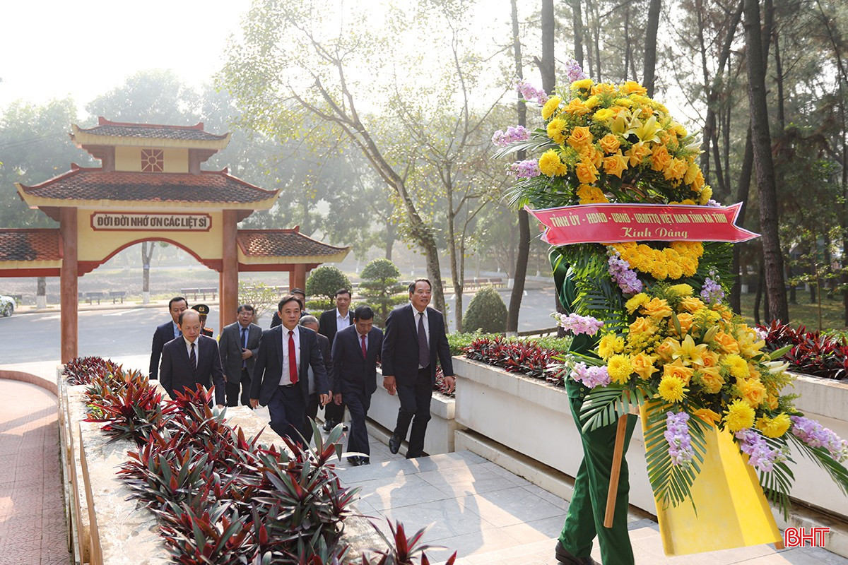 Tại Nghĩa trang Liệt sĩ Núi Nài (TP Hà Tĩnh), trong không khí trang nghiêm, các đại biểu bày tỏ lòng tưởng nhớ, tri ân sâu sắc đối với các anh hùng, liệt sĩ đã không tiếc máu xương vì sự nghiệp giải phóng dân tộc, chủ nghĩa xã hội.