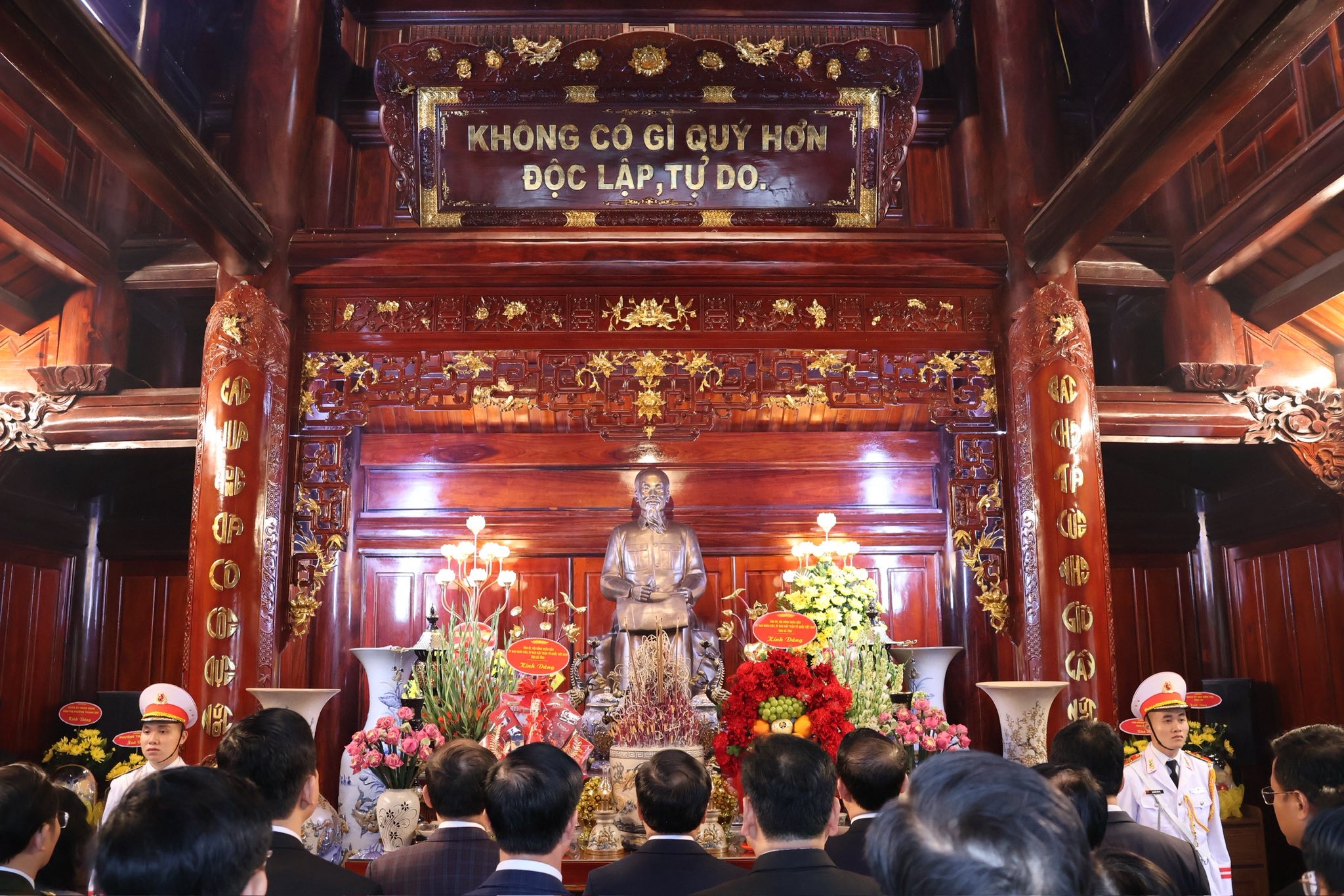 Trong không khí trang nghiêm, đoàn đại biểu bày tỏ lòng biết ơn vô hạn, lòng thành kính sâu sắc trước công lao to lớn của Chủ tịch Hồ Chí Minh - Anh hùng giải phóng dân tộc, Danh nhân văn hóa thế giới; Người đã cống hiến trọn đời cho sự nghiệp đấu tranh giải phóng dân tộc, thống nhất đất nước, xây dựng Tổ quốc Việt Nam độc lập, tự do, hạnh phúc.