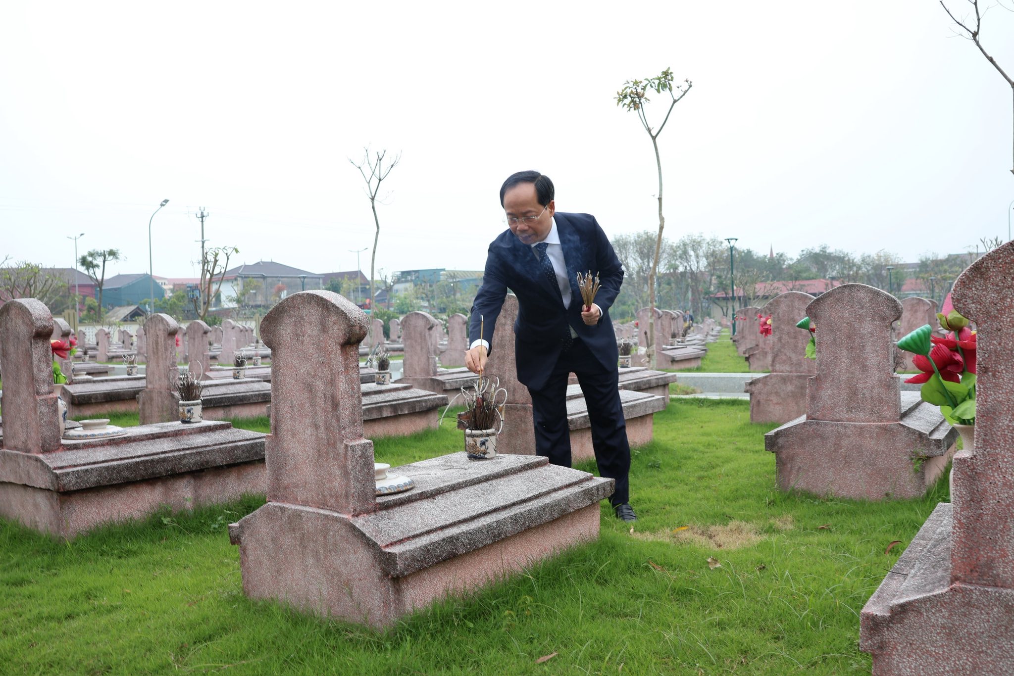 Tiếp đó, đoàn đại biểu đã tới dâng hương tưởng niệm các anh hùng liệt sĩ tại Nghĩa trang Liệt sĩ Núi Nài ở phường Thành Sen.