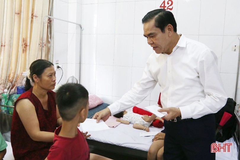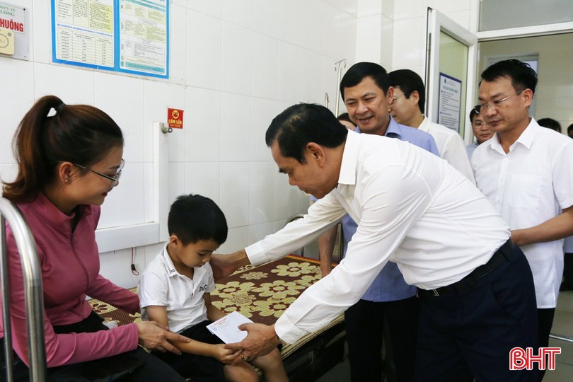 Nhân dịp này, Chủ tịch UBND tỉnh Võ Trọng Hải cũng đã tặng quà động viên các y bác sỹ tại Khoa Nhi (Bệnh viện Đa khoa tỉnh). Chủ tịch UBND tỉnh mong muốn các y bác sỹ tiếp tục nỗ lực nâng cao năng lực chuyên môn, trau dồi y đức, tinh thần, thái độ phục vụ để chăm sóc, điều trị tốt nhất cho các bệnh nhân.