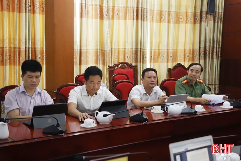 Chủ tịch UBND tỉnh Võ Trọng Hải - Tổ trưởng Tổ công tác Đề án 06 tỉnh và Phó Chủ tịch UBND tỉnh Lê Ngọc Châu điều hành điểm cầu Hà Tĩnh.