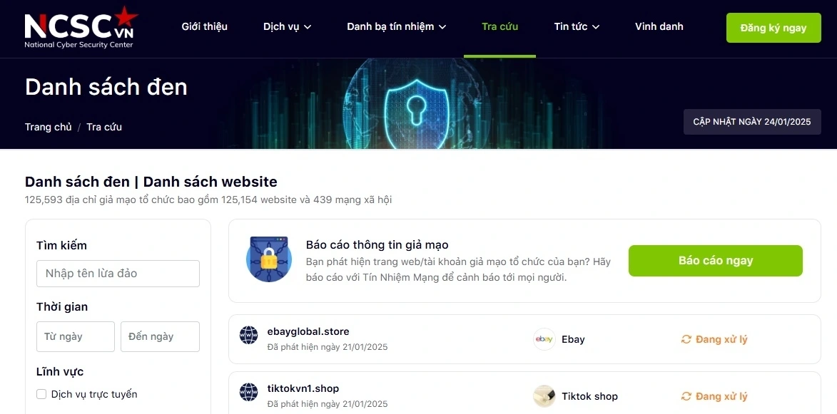 Với việc phát hiện thêm 72 website giả mạo, lừa đảo trong tháng 1/2025, lũy kế đến nay, số lượng địa chỉ website giả mạo cơ quan, tổ chức trong cơ sở dữ liệu chống lừa đảo trực tuyến quốc gia là gần 125.600 địa chỉ.