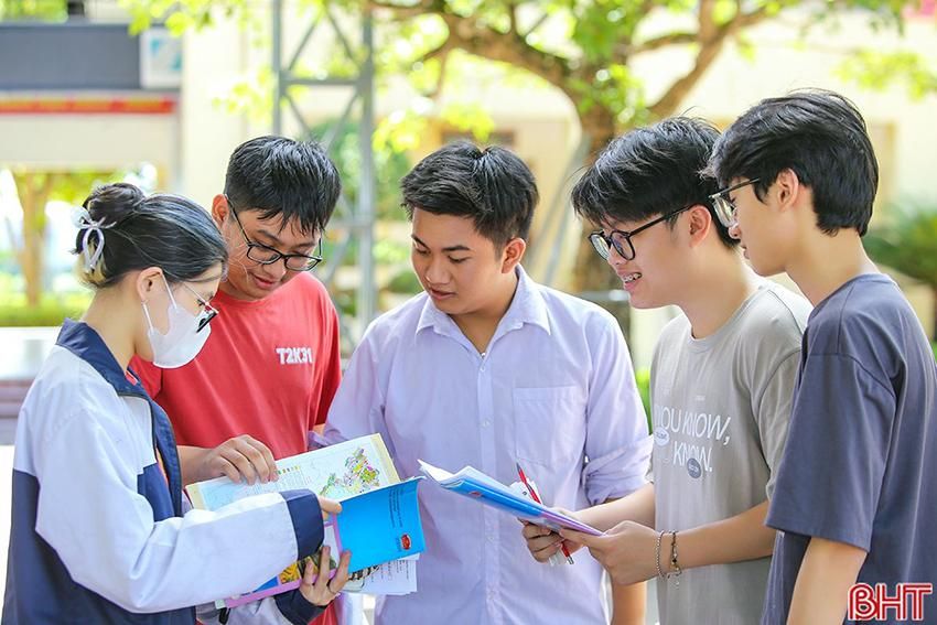 Thí sinh điểm thi Trường THPT Chuyên Hà Tĩnh trao đổi sau khi hoàn thành bài thi tổ hợp Kỳ thi tốt nghiệp THPT năm 2024.Dựa theo dữ liệu điểm thi tốt nghiệp THPT năm
