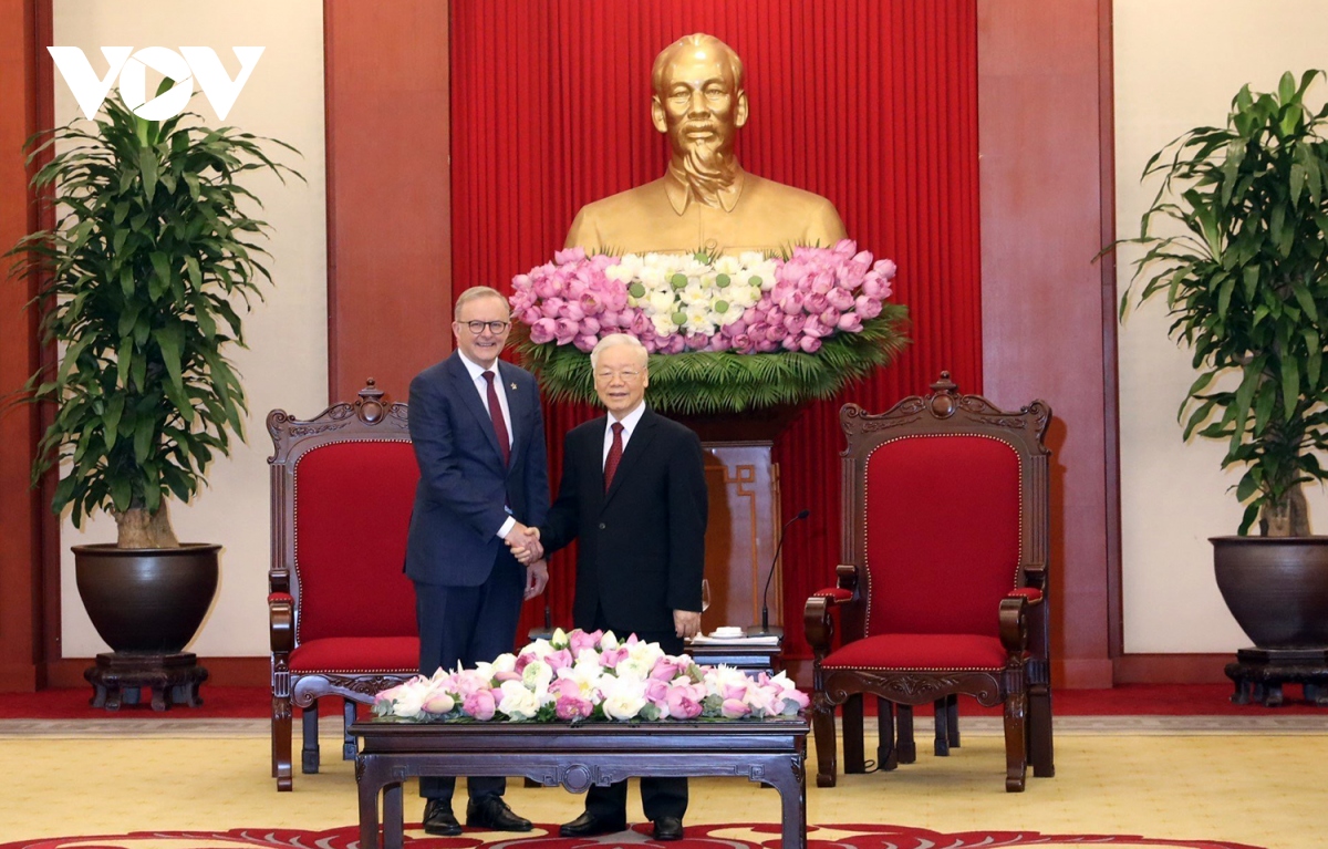 Ngày 4/6/2023, Tổng Bí thư Nguyễn Phú Trọng tiếp Lãnh đạo Công đảng, Thủ tướng Chính phủ Australia Anthony Albanese thăm chính thức Việt Nam. Chuyến thăm diễn ra đúng dịp hai nước kỷ niệm 50 năm thiết lập quan hệ ngoại giao (1973-2023).