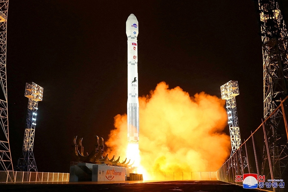 Hình ảnh Triều Tiên phóng tên lửa đưa vệ tinh do thám đầu tiên của nước này vào không gian tháng 11/2023. Ảnh: KCNA