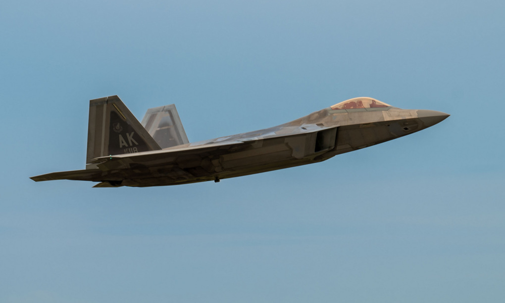 Tiêm kích F-22 Mỹ cất cánh trong cuộc diễn tập ở Nhật Bản hôm 15/1. Ảnh: USAF