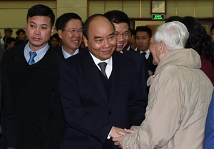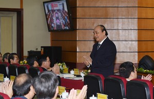 Ủy viên Bộ Chính trị, Thủ tướng Chính phủ Nguyễn Xuân Phúc; Ủy viên Bộ Chính trị, Bí thư Trung ương Đảng, Trưởng Ban Tuyên giáo Trung ương Võ Văn Thưởng; Phó Thủ tướng Vũ Đức Đam dự Hội nghị.