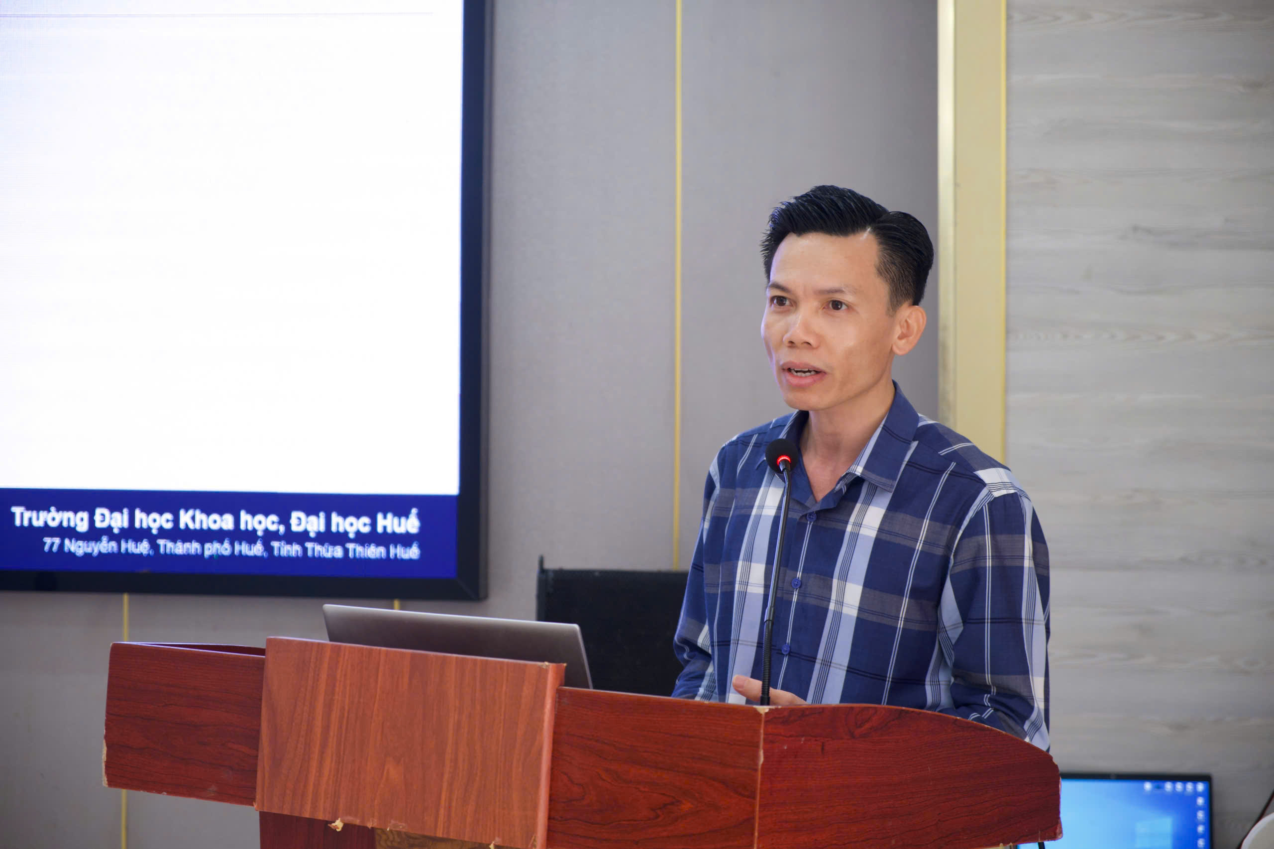 Tiến sĩ Hoàng Đình Trung, Trưởng Khoa đào tạo sau đại học, Trường Đại học Khoa học – Đại học Huế (Chủ nhiệm đề tài) phát biểu tại hội thảo