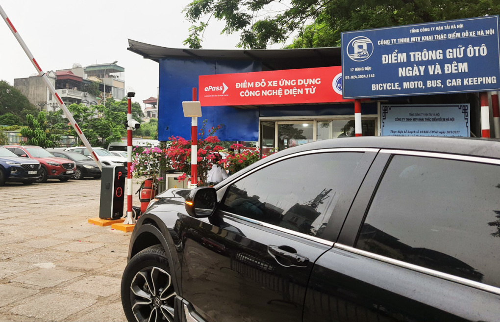 Điểm trông giữ phương tiện trên phố Trần Quang Khải áp dụng thu phí không dùng tiền mặt. Ảnh: Võ Hải