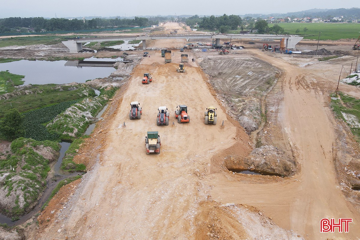 Những ngày này, tranh thủ thời tiết thuận lợi, các nhà thầu đang tập trung nhân lực, máy móc, thiết bị, đẩy nhanh việc thi công dự án cao tốc Bắc – Nam qua địa bàn Hà Tĩnh, sau thời gian bị gián đoạn vì trời liên tục có mưa.