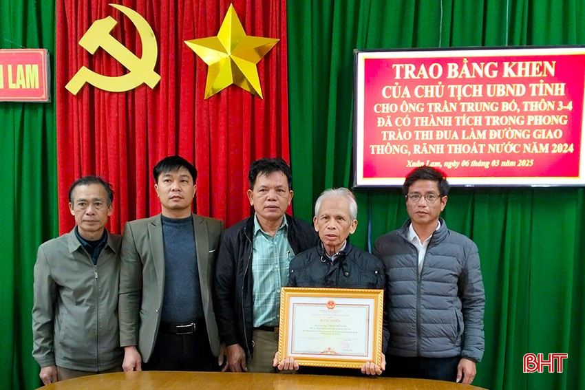 Ông Đặng Văn Hoài – Chủ tịch UBND xã Xuân Lam cho biết: Ngoài hiến đất, mở đường, gia đình ông Trần Trung Bố luôn gương mẫu đi đầu trong các hoạt động phong trào của địa phương. Những việc làm có ý nghĩa cao đẹp, đáng trân trọng trên thể hiện tính tiên phong của người lính trong công cuộc xây dựng NTM để phát triển quê hương. Ghi nhận đóng góp trên, ngày 22/1/2025, Chủ tịch UBND tỉnh Hà Tĩnh đã tặng bằng khen cho gia đình ông với thành tích xuất sắc trong phong trào thi đua làm đường giao thông, rãnh thoát nước năm 2024.