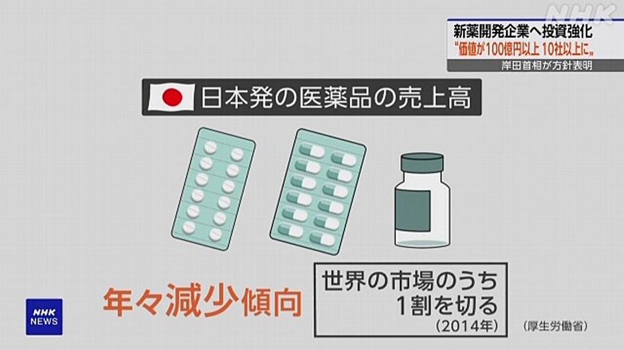Theo Bộ Y tế, Lao động và Phúc lợi Nhật Bản, doanh số bán dược phẩm do Nhật Bản sản xuất trên thị trường dược phẩm toàn cầu đã giảm dần theo từng năm, và kể từ năm 2014 đến nay là dưới 10%. Đặc biệt, trong thời gian lây lan nhanh chóng của đại dịch Covid-19, Nhật Bản bị đánh giá “tụt hậu” so với nhiều quốc gia khác trong việc phát triển vắc-xin tiêm phòng cũng như các loại thuốc điều trị bệnh. Ngoài ra, tình trạng “thiếu hụt thuốc”, trong đó nhiều loại thuốc mặc dù được phê duyệt ở nước ngoài nhưng không thể sử dụng ở Nhật Bản, đã trở thành một vấn đề, trong khi các thử nghiệm lâm sàng không được tiến hành ở Nhật Bản vì số lượng thuốc hạn chế. Điều này khiến ngành y tế của Nhật Bản thực sự gặp nhiều thách thức.