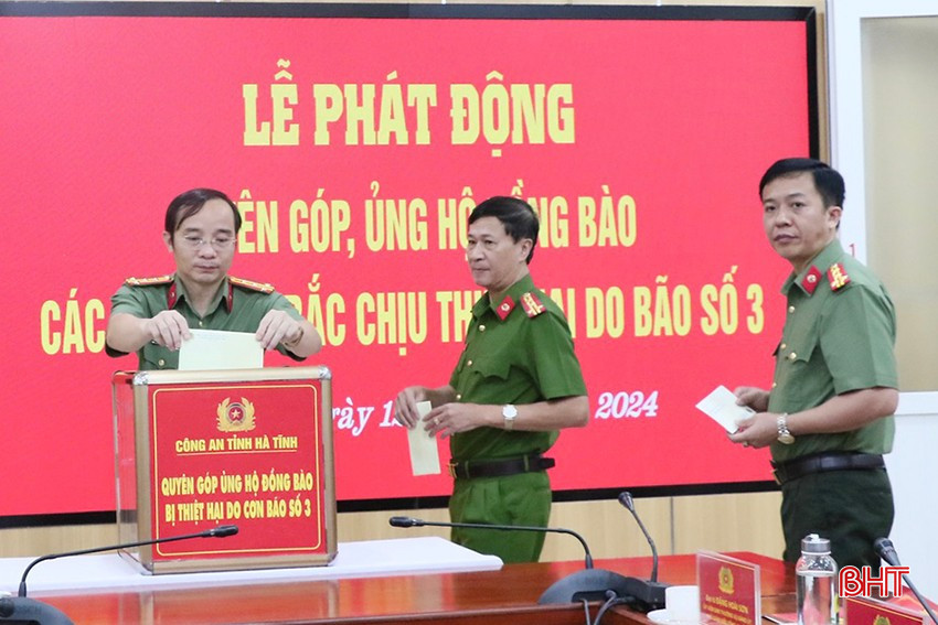 Hưởng ứng phát động của Ban Giám đốc Công an tỉnh, Công an TP Hà Tĩnh cũng đã tổ chức lễ phát động quyên góp, ủng hộ đồng bào các tỉnh phía Bắc chịu thiệt hại do bão số 3 cho toàn bộ cán bộ, chiến sĩ đơn vị tham gia.