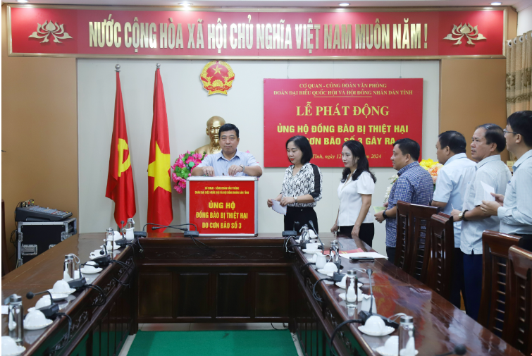 Hưởng ứng lời kêu gọi của Ủy ban Trung ương MTTQ Việt Nam, Ủy ban MTTQVN tỉnh Hà Tĩnh, phát huy truyền thống đại đoàn kết toàn dân tộc, bằng tinh thần “Tương thân tương ái”, Cơ quan - Công đoàn Văn phòng Đoàn ĐBQH và HĐND tỉnh phát động, kêu gọi toàn thể cán bộ công chức, người lao động cùng chung tay chia sẻ, ủng hộ Nhân dân vùng bị thiệt hại do bão, lũ gây ra.