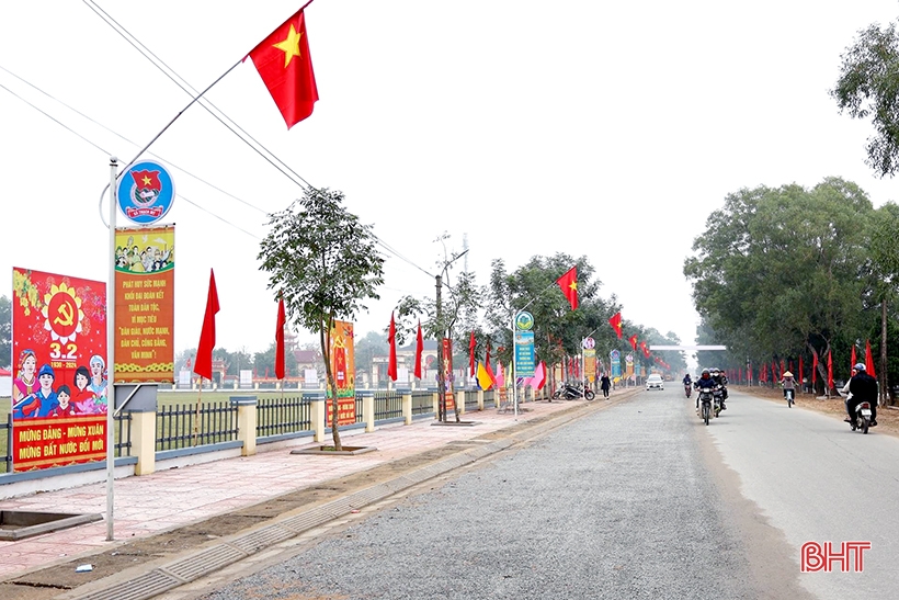 Nhiều địa phương ở huyện Lộc Hà tuyên truyền trực quan bằng băng rôn, pano, áp phích, cờ, góp phần làm nên không khí tươi vui, phấn khởi chào đón mùa xuân mới của Đảng.