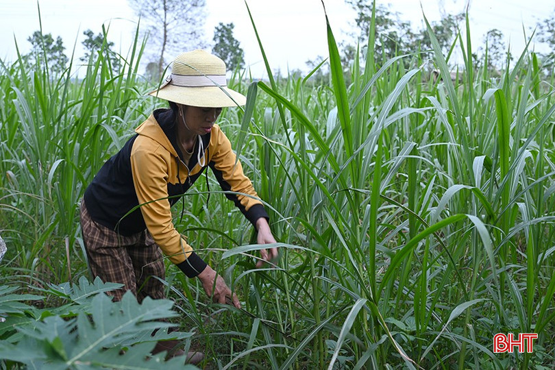 Để chủ động nguồn thức ăn chăn nuôi gia đình chị Lộc tự trồng cỏ.