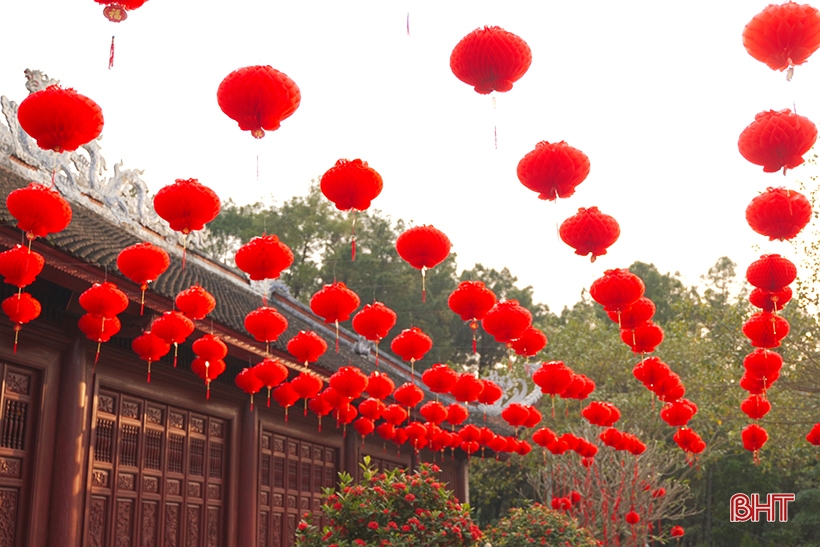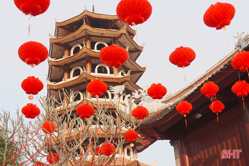 ... và tháp chuông Đồng Lộc đã được trang trí thêm các loại đèn lồng, tạo không gian cổ kính.