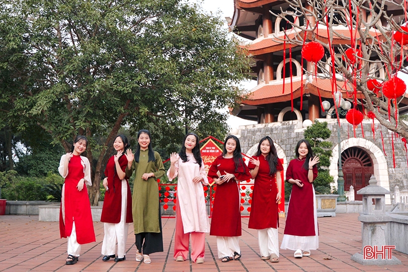 Nhiều bạn trẻ đã tới đây để có những bức hình áo dài thật đẹp dịp Tết.