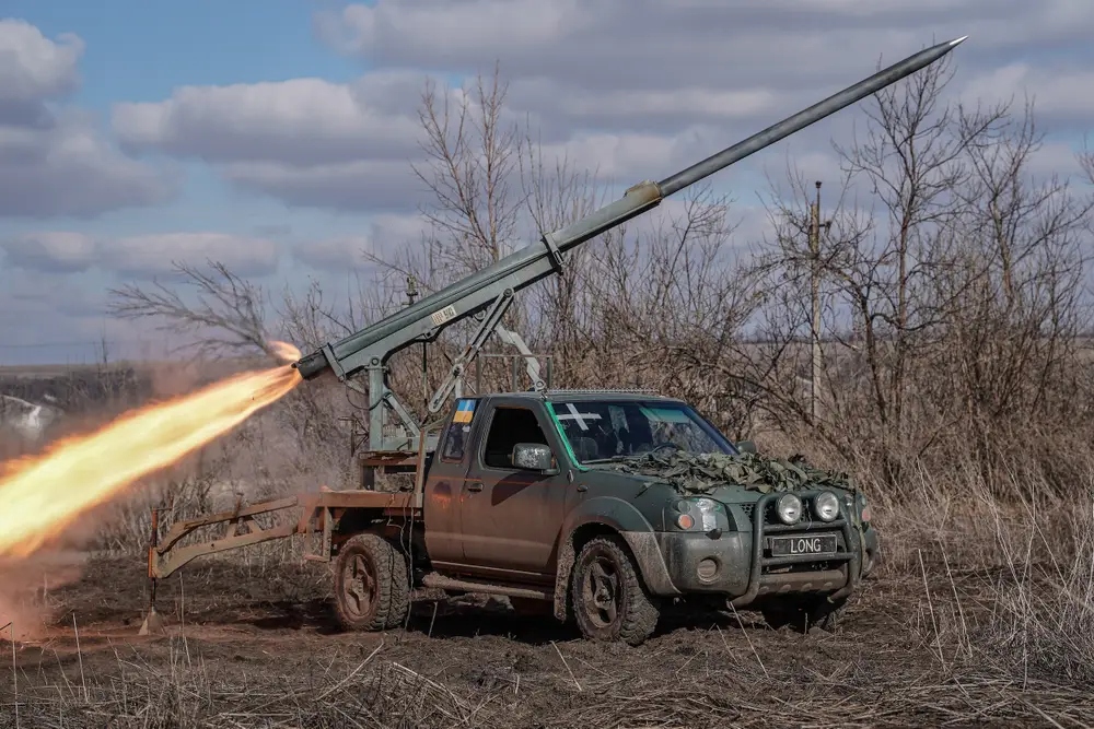 Binh sĩ Ukraine phóng loạt tên lửa tự chế vào các vị trí của Nga gần thành phố Bakhmut. Ảnh: Getty Images