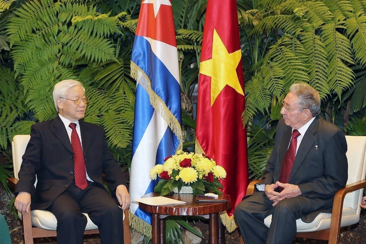 Tổng Bí thư Nguyễn Phú Trọng thăm chính thức Cuba 2 lần vào tháng 4/2012 và tháng 3/2018. Hãng thông tấn Cuba ACN đã đưa tin đậm nét về các chuyến thăm này, nhấn mạnh việc lãnh đạo hai nước đề cao mối quan hệ song phương tốt đẹp, khẳng định Việt Nam và Cuba đã duy trì mối quan hệ hữu nghị lịch sử trong vòng hơn nửa thế kỷ và nhất trí tiếp tục phát huy tiềm năng nhằm mở rộng mối quan hệ, đặc biệt trong lĩnh vực kinh tế và thương mại. Ảnh: Trí Dũng/TTXVN