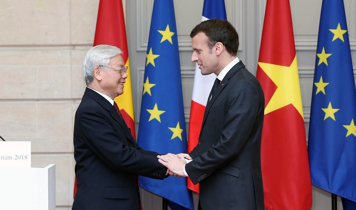 Chuyến thăm chính thức của Tổng Bí thư Nguyễn Phú Trọng tới Pháp từ ngày 25 đến 27/3/2018 diễn ra trong bối cảnh Việt Nam và Pháp kỷ niệm 45 năm ngày thiết lập quan hệ ngoại giao, 5 năm thiết lập quan hệ Đối tác chiến lược, và trong bối cảnh nước Pháp và Liên minh châu Âu đang có nhiều thay đổi. Ảnh: Trí Dũng/TTXVN