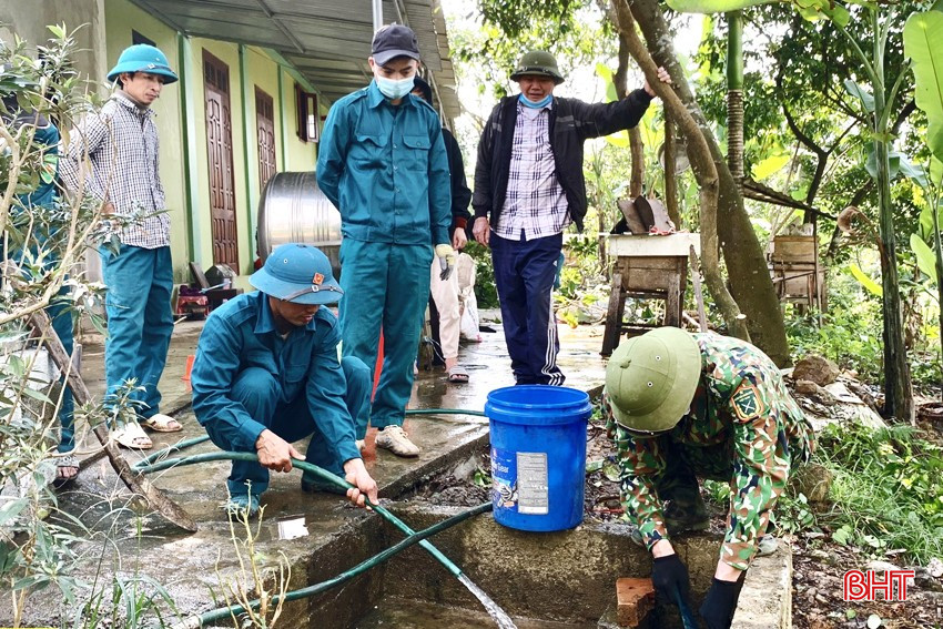 Mấy ngày nay, các chiến sĩ dân quân ở Tiểu đội Dân quân thường trực xã Sơn Kim 1 (Hương Sơn) cũng đang gấp rút đẩy nhanh tiến độ hỗ trợ gia đình ông Nguyễn Quang Thành (78 tuổi, ở thôn Khe Dầu) xây dựng bể lắng lọc nước thải, bể chứa rác hữu cơ, dọn dẹp nhà cửa, chỉnh trang vườn tược để đón tết.