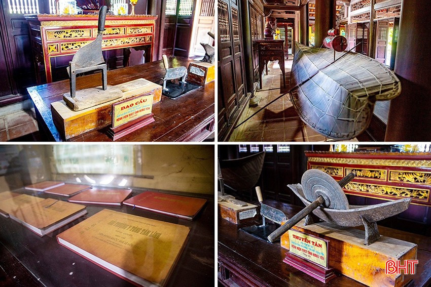 Một số tư liệu, hiện vật được phục dựng như: dụng cụ bào chế thuốc, diều sáo, bản sách thuốc Hải Thượng Lãn Ông toàn thư, sách "Y gia tâm lĩnh", "Hải Thượng Y tông tâm lĩnh"...