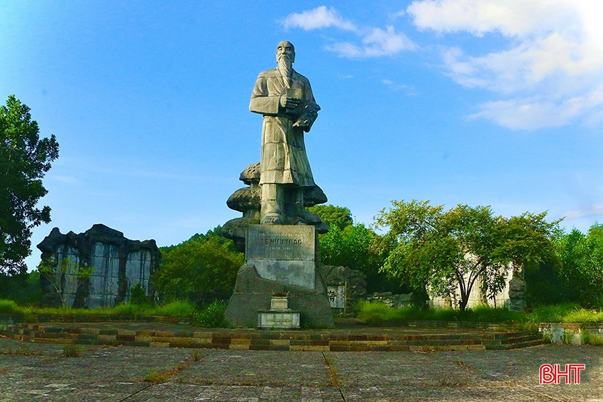Tượng đài Lê Hữu Trác nằm trên ngọn núi Minh Tự, nơi gắn liền với cuộc đời làm thuốc, vui thú cảnh núi rừng Hương Sơn của ông.