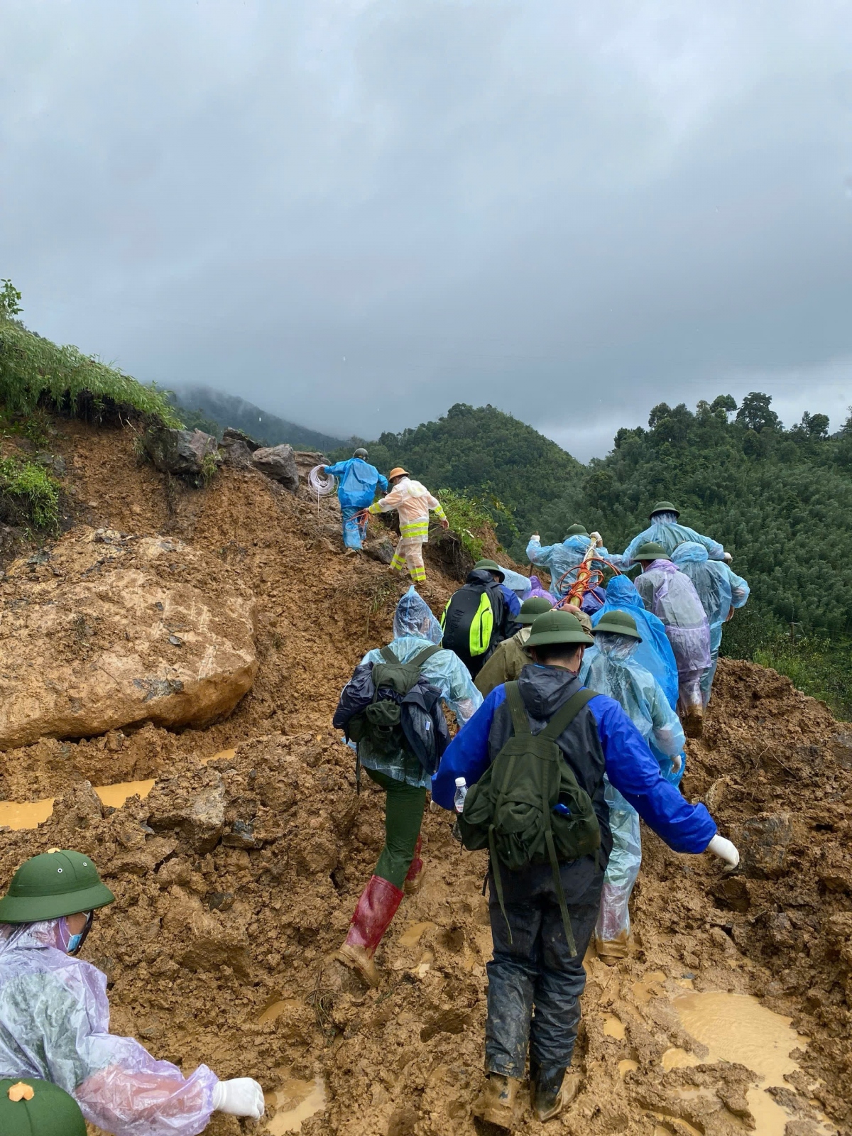 Trong cơn bão số 3 và ảnh hưởng của hoàn lưu bão, Bộ Công an đã chủ động bảo đảm an ninh trật tự, ứng phó, cứu nạn, cứu hộ và khắc phục hậu quả bão, mưa lũ. Bộ Công an đã ban hành kế hoạch tổng thể, phân công nhiệm vụ cụ thể đối với công an các đơn vị, địa phương thực hiện. Trong ảnh: Trong vụ sạt lở tại xã Ca Thành, huyện Nguyên Bình, tỉnh Cao Bằng làm nhiều người thiệt mạng, lực lượng công an phối hợp với các lực lượng chức năng đã tìm kiếm được thi thể nạn nhân.