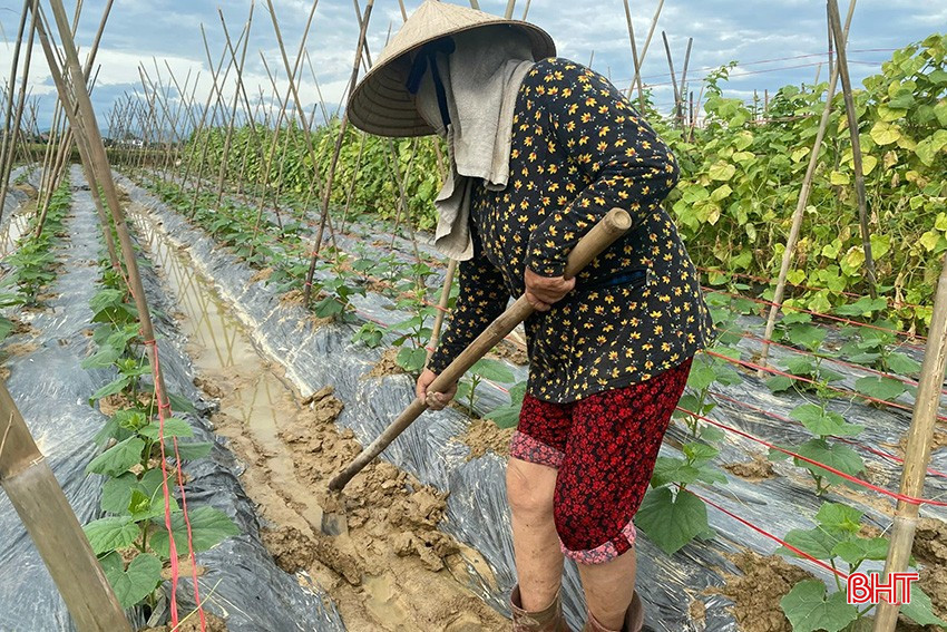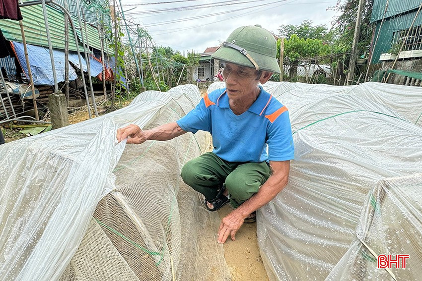 Cách đó không xa, ông Nguyễn Đình Tý (thôn Thọ, xã Thạch Liên) cũng đang khẩn trương thu hoạch những quả mướp trên giàn, thoát nước cho luống cà, dưa chuột và che chắn nilon cho luống su hào, cải bắp vừa xuống giống. Ông Nguyễn Đình Tý cho hay: “Gia đình tôi vừa bỏ gần 2 triệu đồng để ươm cây giống sản xuất vụ đông thì gặp mưa, tôi phải nhanh chóng mua lưới, nilon để che chắn, hi vọng có thể cứu được khỏi đợt mưa này, nếu không mất cả công sức, vốn liếng”.