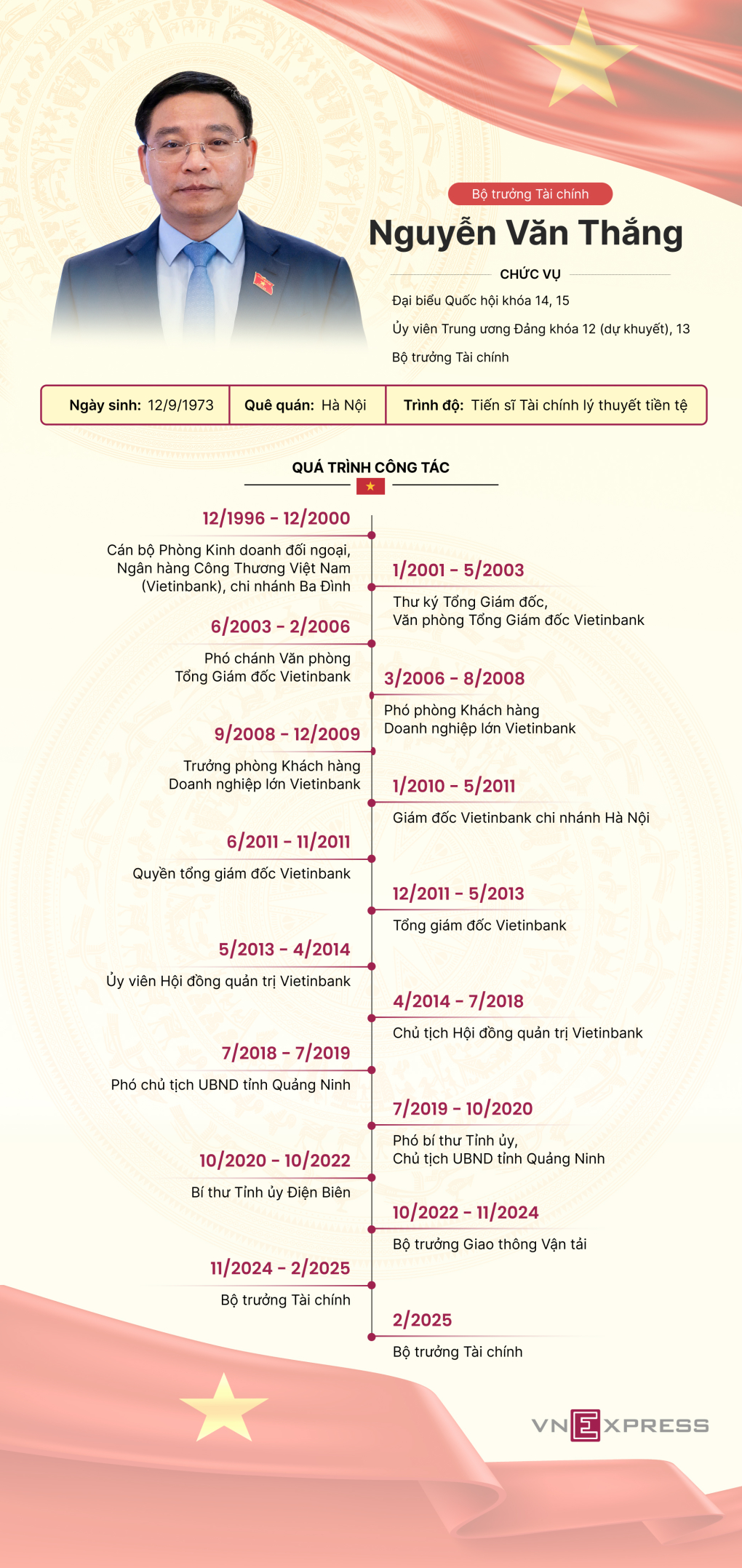 Tiểu sử tân Bộ trưởng Tài chính Nguyễn Văn Thắng. Đồ họa: Khánh Hoàng