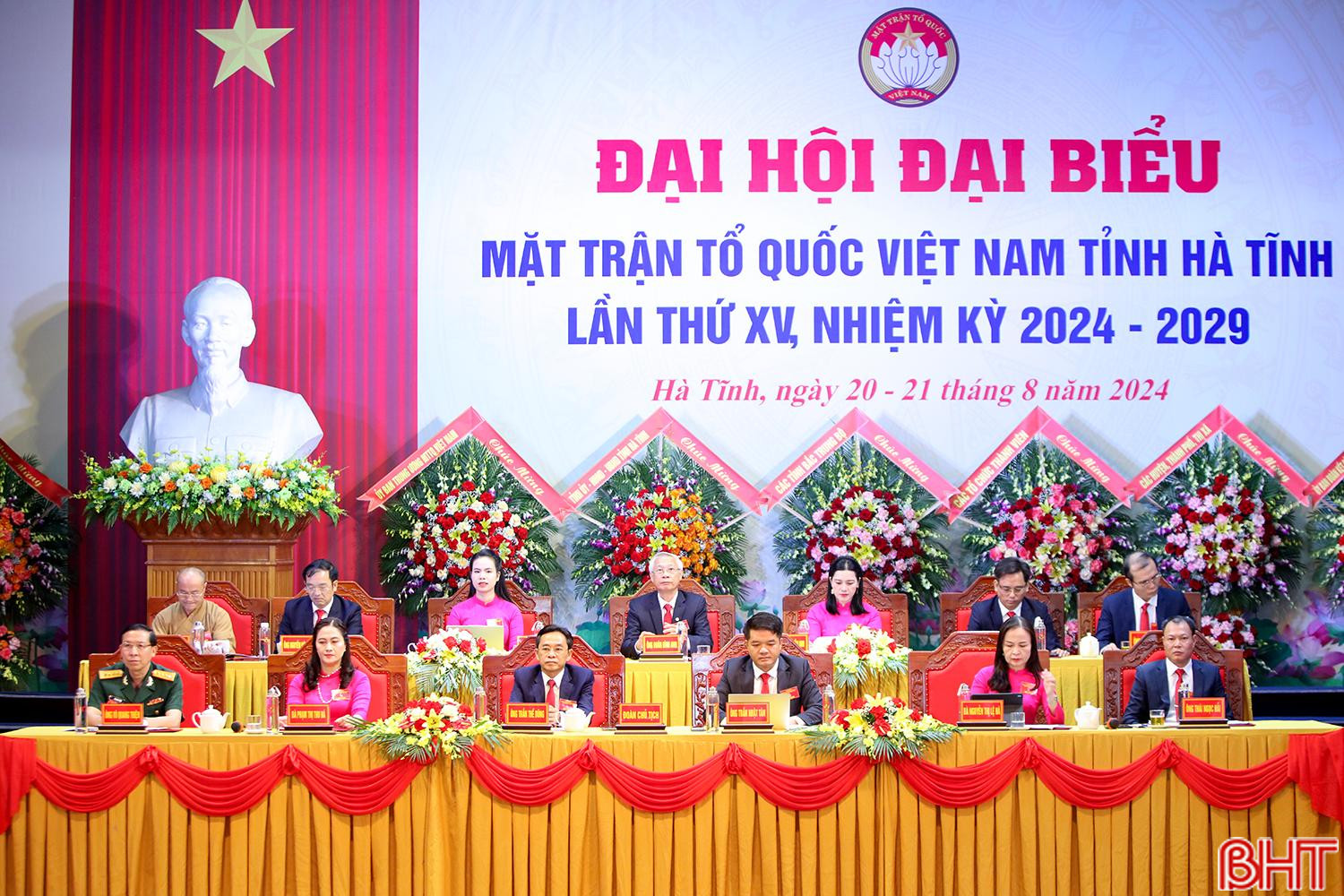 Với phương châm “Đoàn kết - Dân chủ - Đổi mới - Phát triển”, Đại hội Đại biểu MTTQ tỉnh lần thứ XV nhiệm kỳ 2024 - 2029 xác định mục tiêu tổng quát: phát huy sức mạnh khối đại đoàn kết toàn dân tộc, khơi dậy truyền thống, nét đẹp văn hóa, con người Hà Tĩnh; nâng cao hiệu quả tuyên truyền, vận động, tập hợp các tầng lớp nhân dân; đẩy mạnh các phong trào thi đua yêu nước, các cuộc vận động; phát huy dân chủ, thực hiện Đảng lãnh đạo, Nhà nước quản lý, MTTQ và các tổ chức chính trị - xã hội làm nòng cốt để Nhân dân làm chủ;
